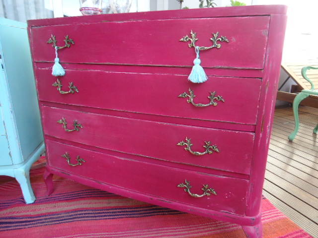 COMODA FRANCESA FUCSIA 4 CAJONES DECAPADA